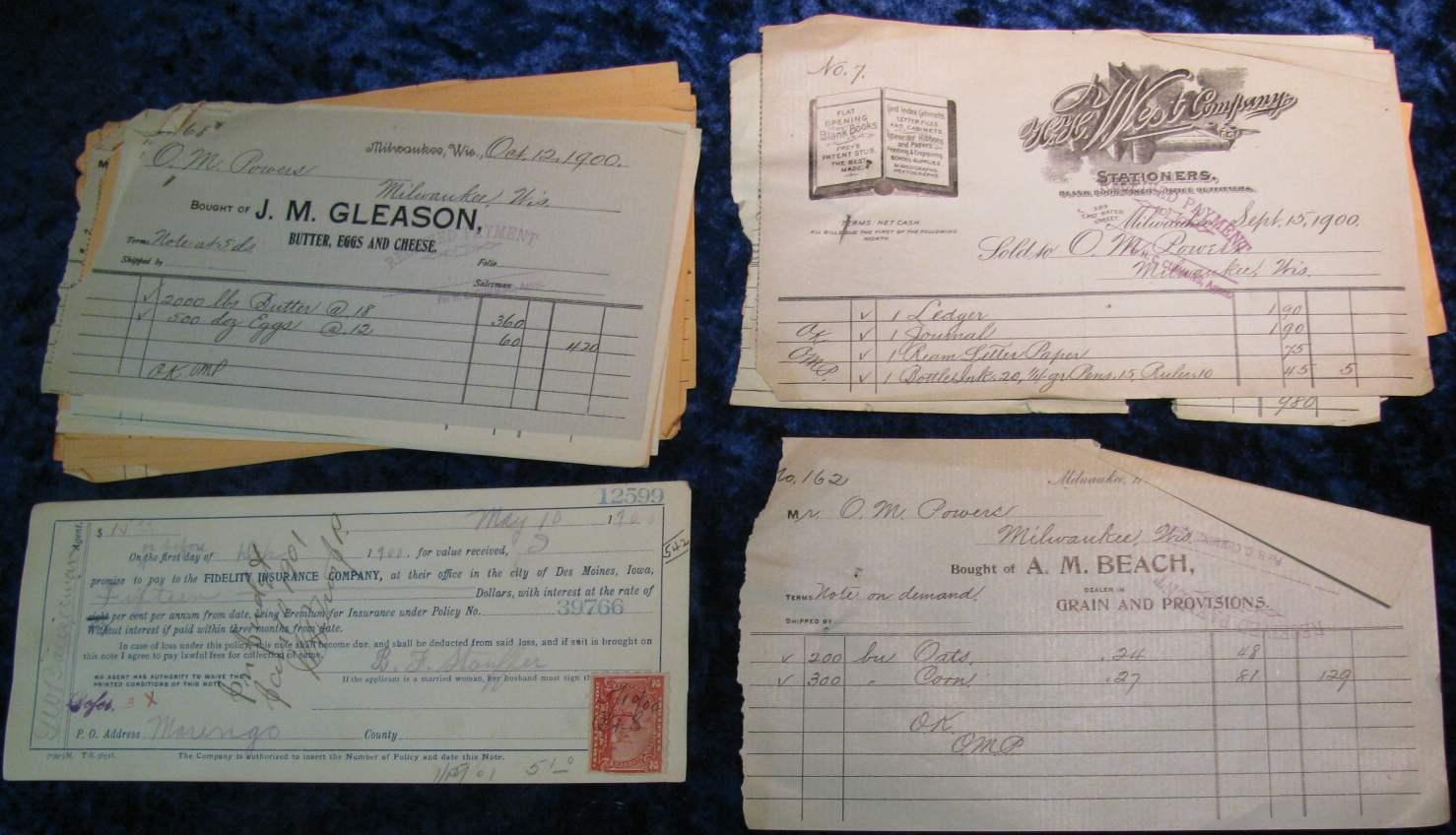 1454. Group of 18 pieces of 1900 Stationery heads, receipts, & etc.