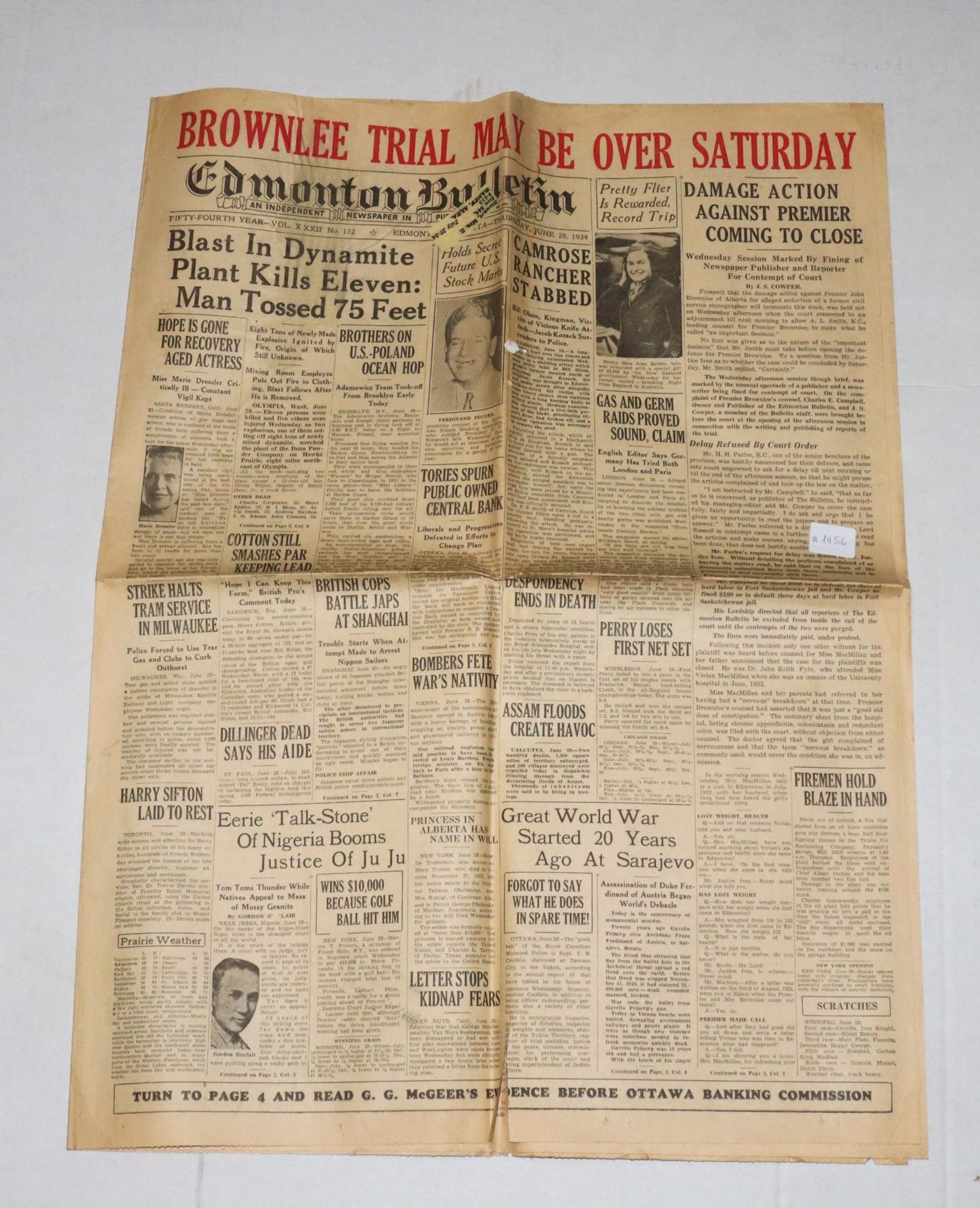 #1456 EDMONTON BULLETIN JUNE 28TH 1934 NEWSPAPER