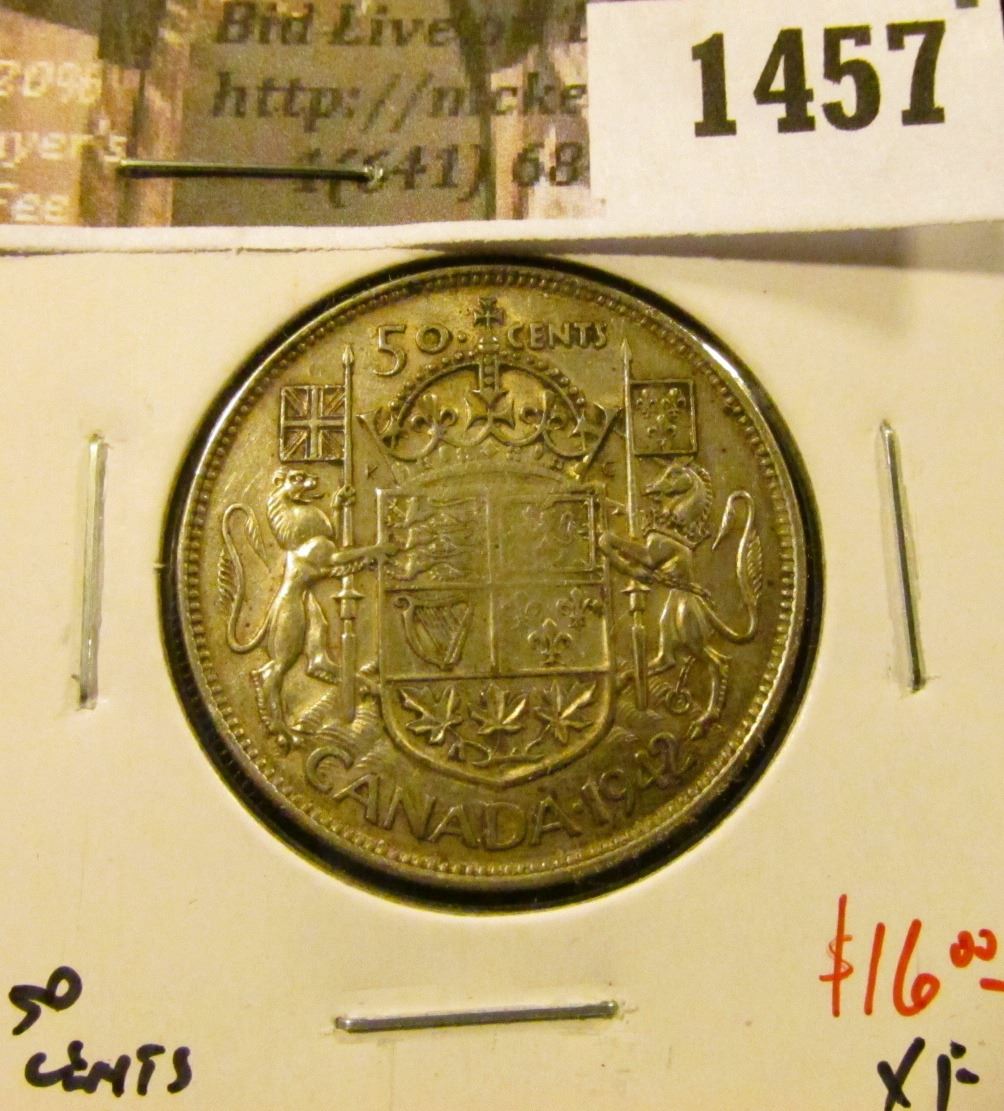 1457 . 1942 Canada 50 Cents, XF, value $16
