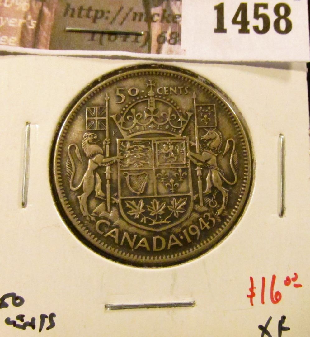 1458 . 1943 Canada 50 Cents, XF, value $16