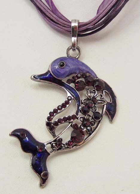 14582 - DOLPHIN PENDANT W/RIBBON NECKLACE