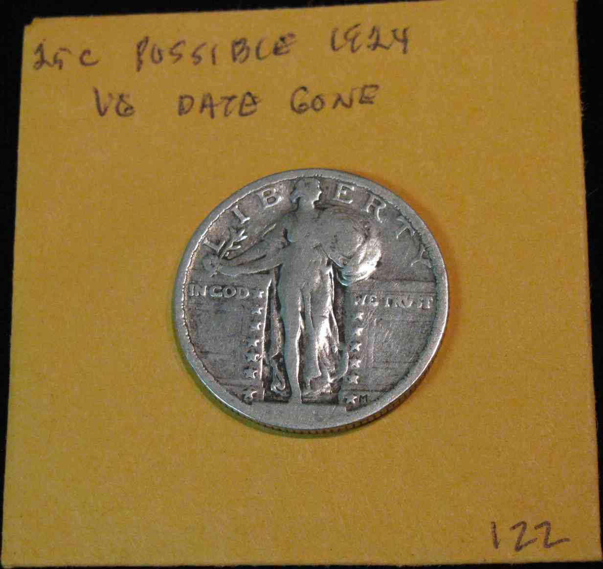 146. 1924 Standing Liberty Quarter. Weak Date VG.