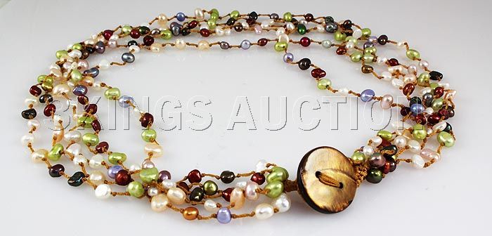 146.21CTW Multi Color Thread Freshwater Pearl Necklace **|**|** 19 inches Multi-color 5 Strand Thread Freshwater Pearl Necklace w/ Botton Lock ; MSRP: $300