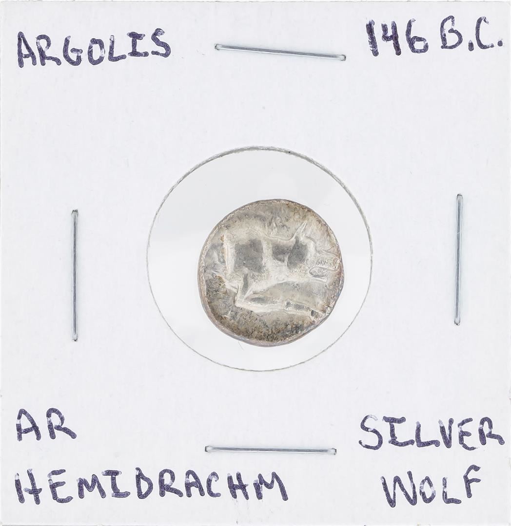 One 146 BC Argolis AR Hemidrachm Silver Wolf Coin.
