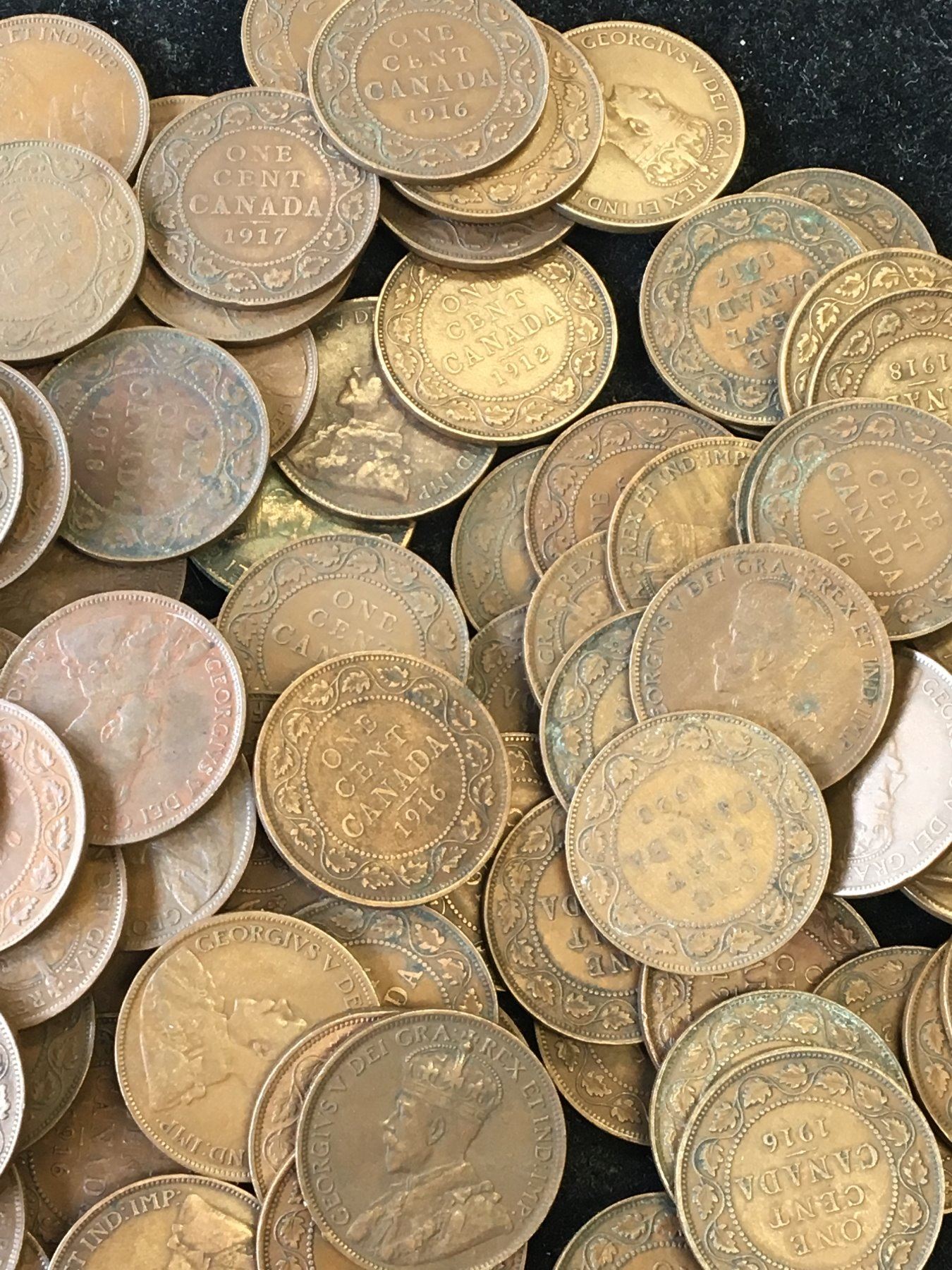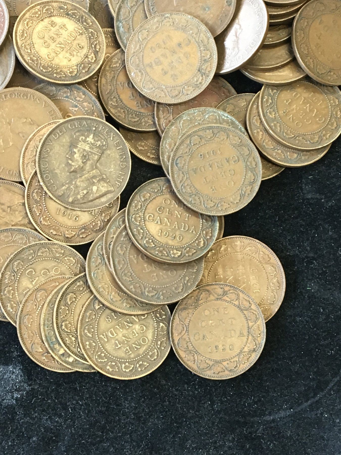 NICE LOT OF 146 CANADA LARGE CENTS! ALL ARE GEORGE V 1911-1920.GRADES VG-AU