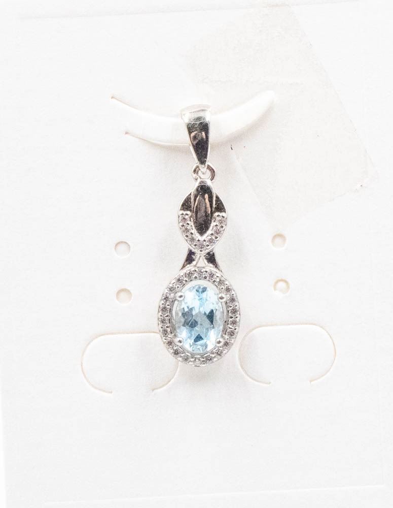 #146-NATURAL BLUE TOPAZ & CZ PENDANT
