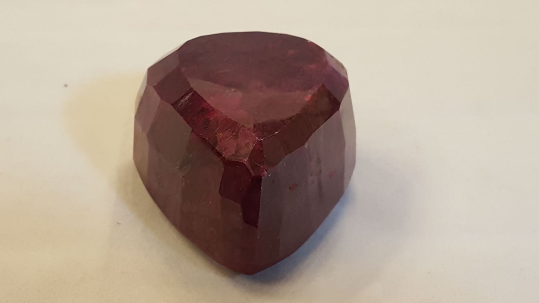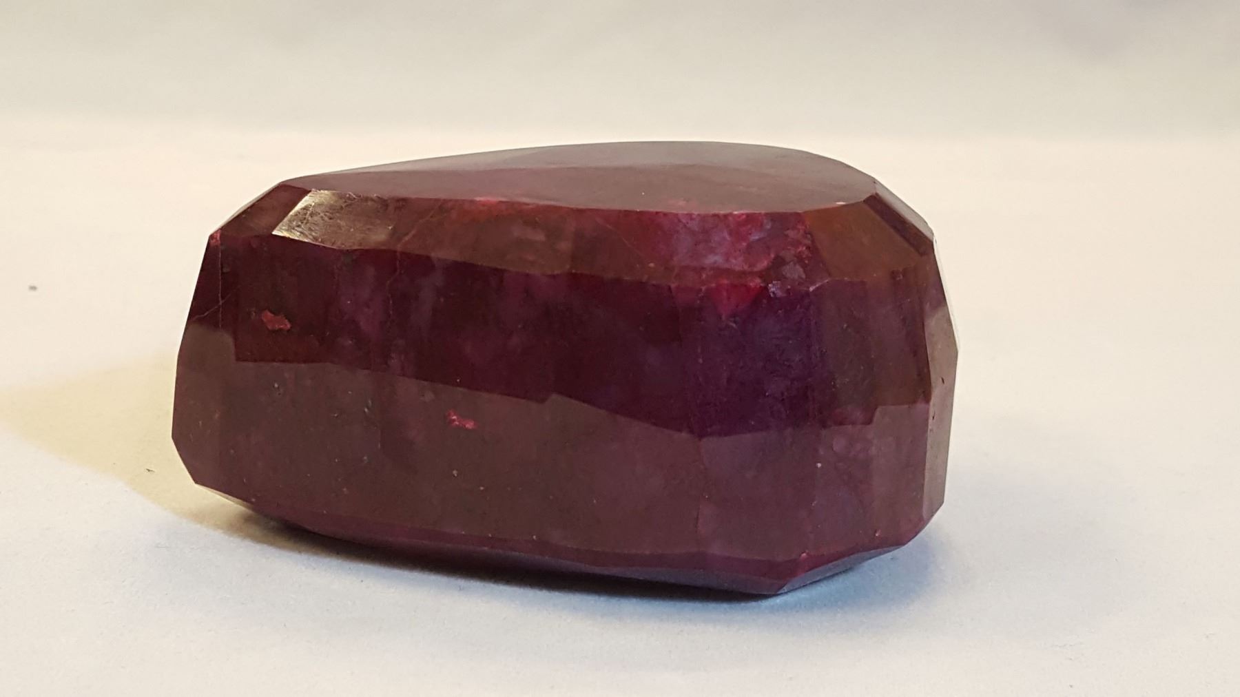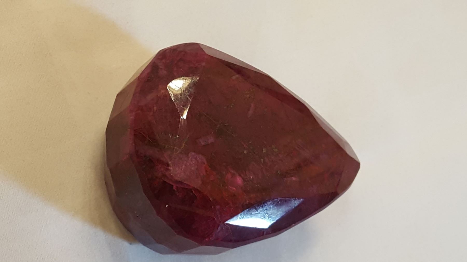 Legendary rare certified 1460.00ct museum size ruby. Fine even color saturation and hue. Natural opaque. Fine pear cut measuring 87.00 x 60.00 x 37.00 mm.