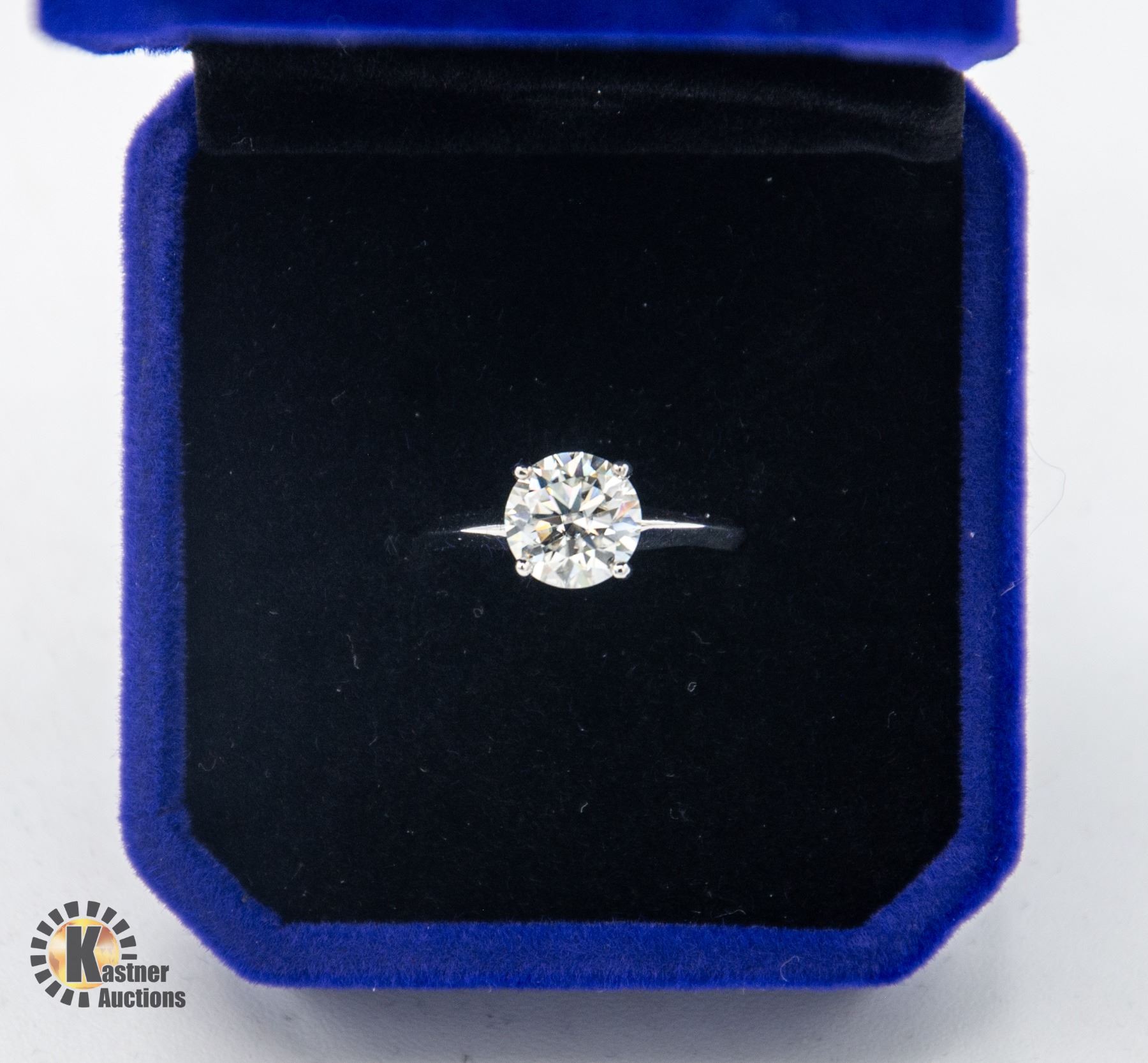GRA CERTIFIED ROUND BRILLIANT CUT MOISSANITE STONE VVS D COLOR SET IN CENTER RING SIZE 5.5