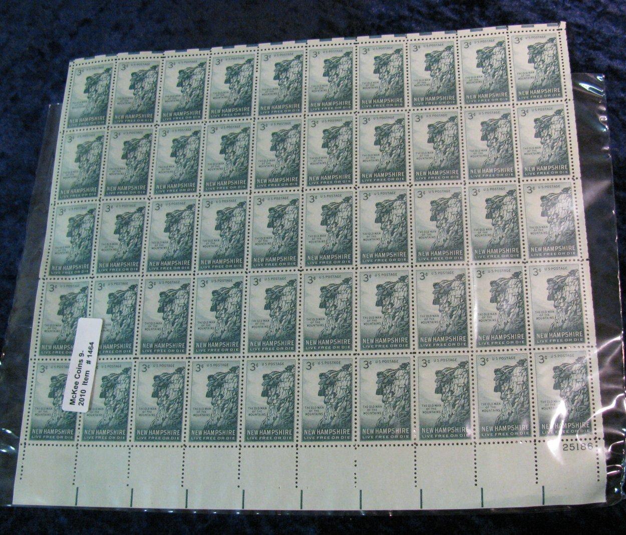 1464. Mint Sheet of Scott # 1068 "New Hampshire" .03c Stamps. (face value $1.50)