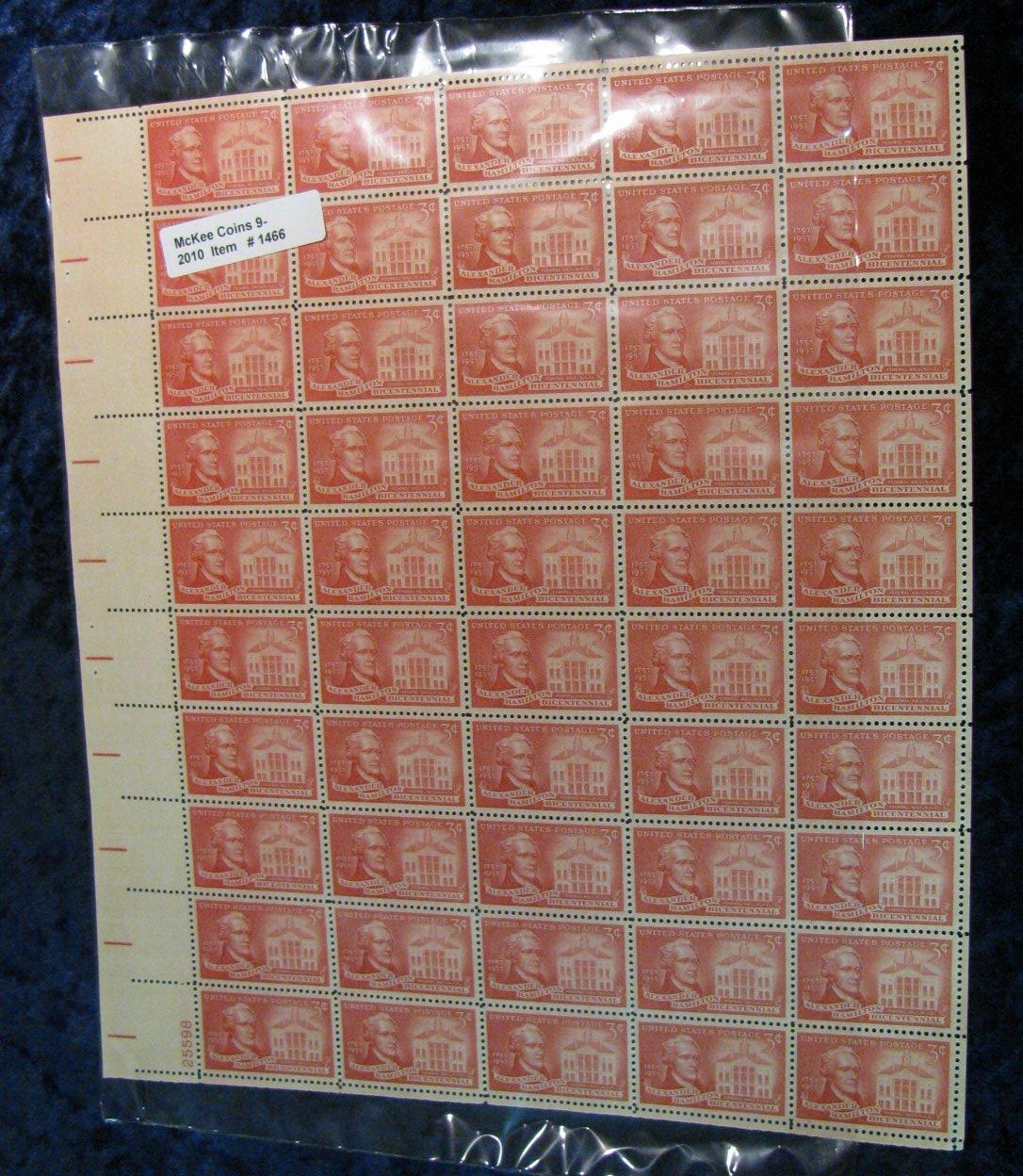 1466. Mint Sheet of "Alexander Hamilton Bicentennial" .03c Stamps. (face value $1.50)