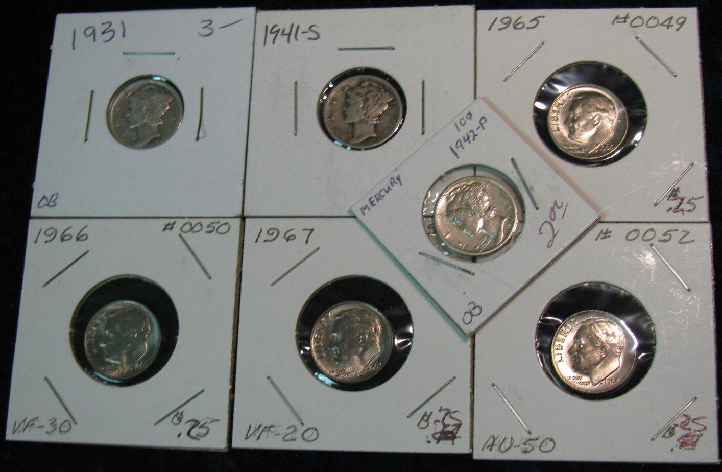 1467. 1931P, 41S, 42P, 65P, 66P, 67P, & 68P Dimes.