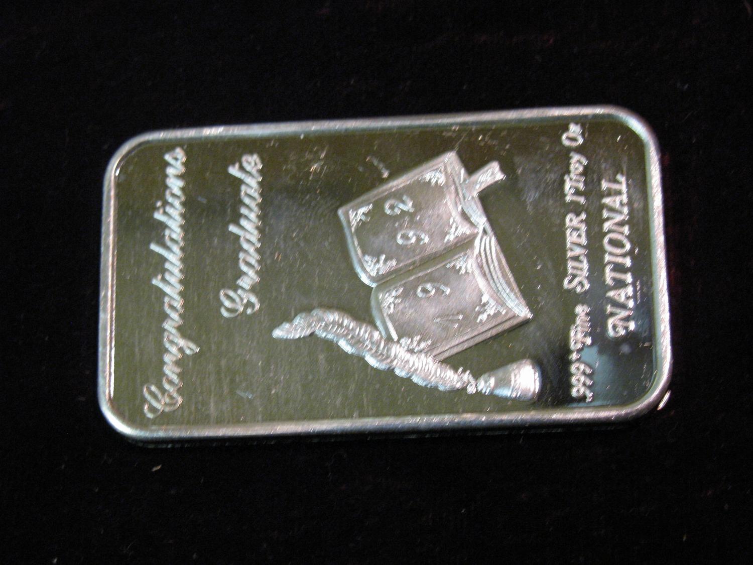 1467. Congratulations Graduate 1992 .999 Fine Silver One Ounce Ingot. National Refinery.