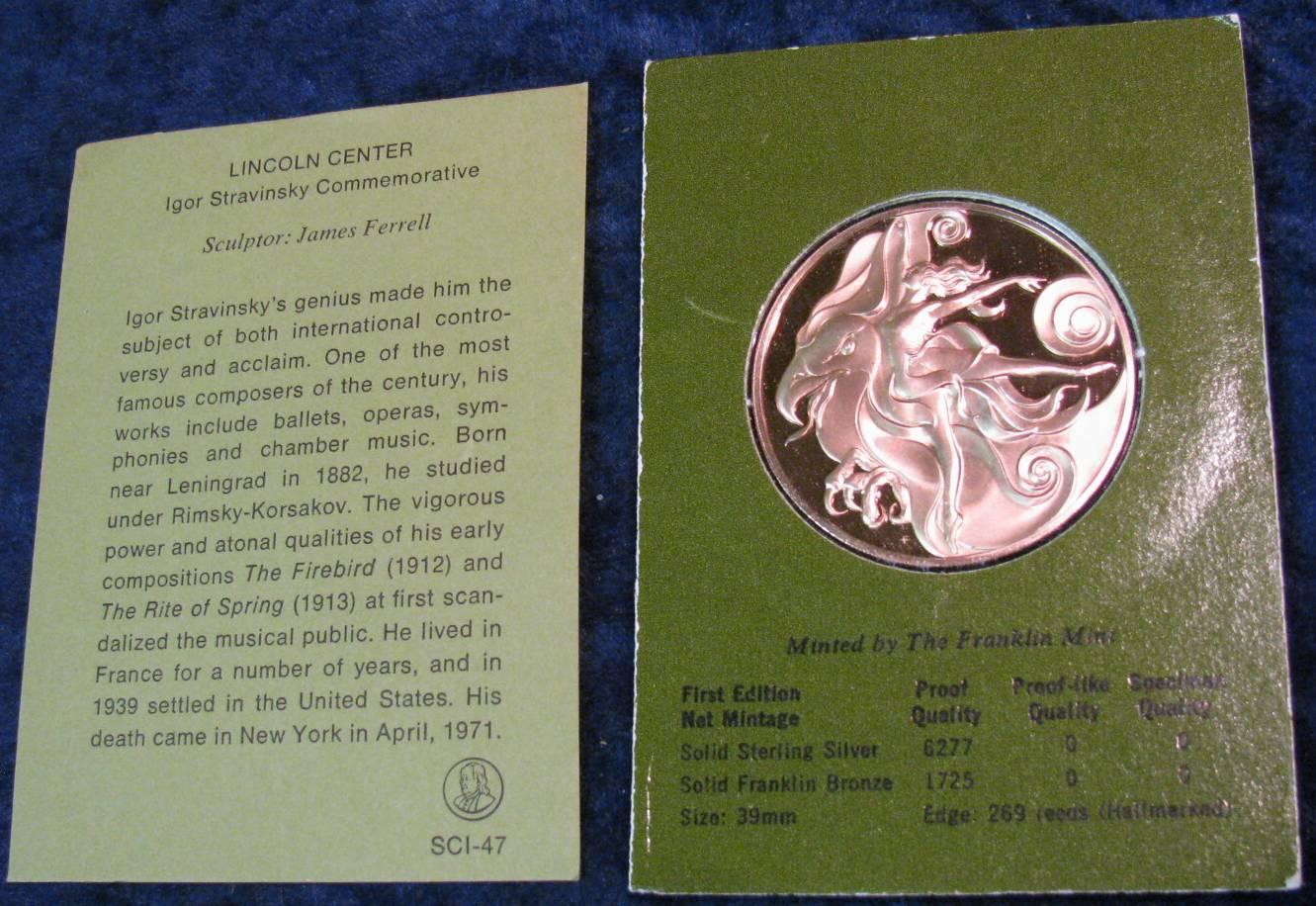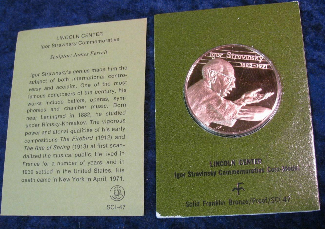 1468. Igor Stravinsky 1882-1971 Commemorative Bronze Medal.