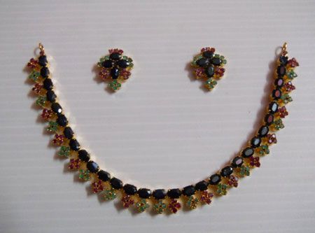 147.85 CTW GOLD PLATED SAPPHIRE/EMERALD/RUBY NECKLACE A **|**|** 147.85 CTW GOLD PLATED SAPPHIRE/EMERALD/RUBY NECKLACE AND EARRING SET STERLING SILVER ; MSRP: $1500