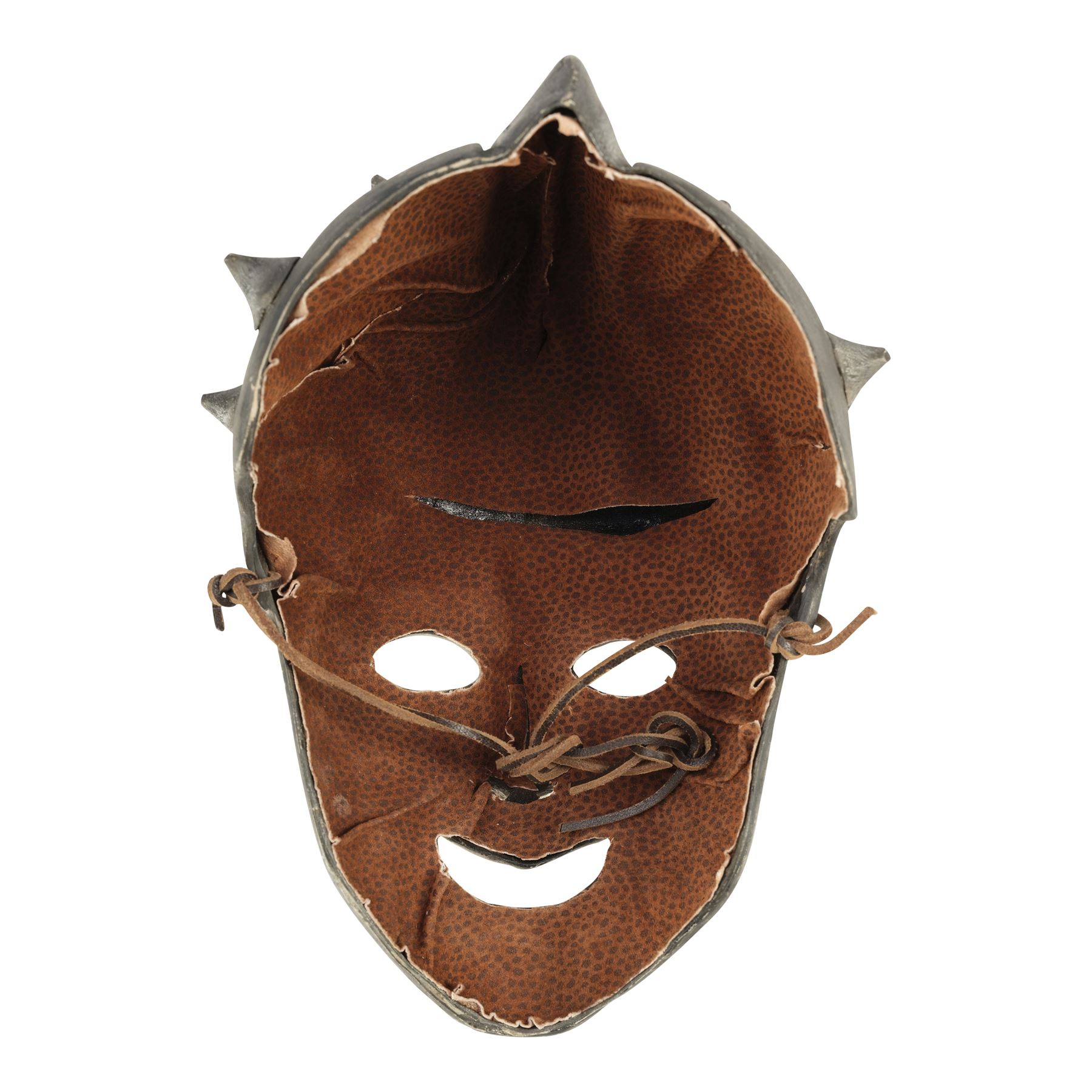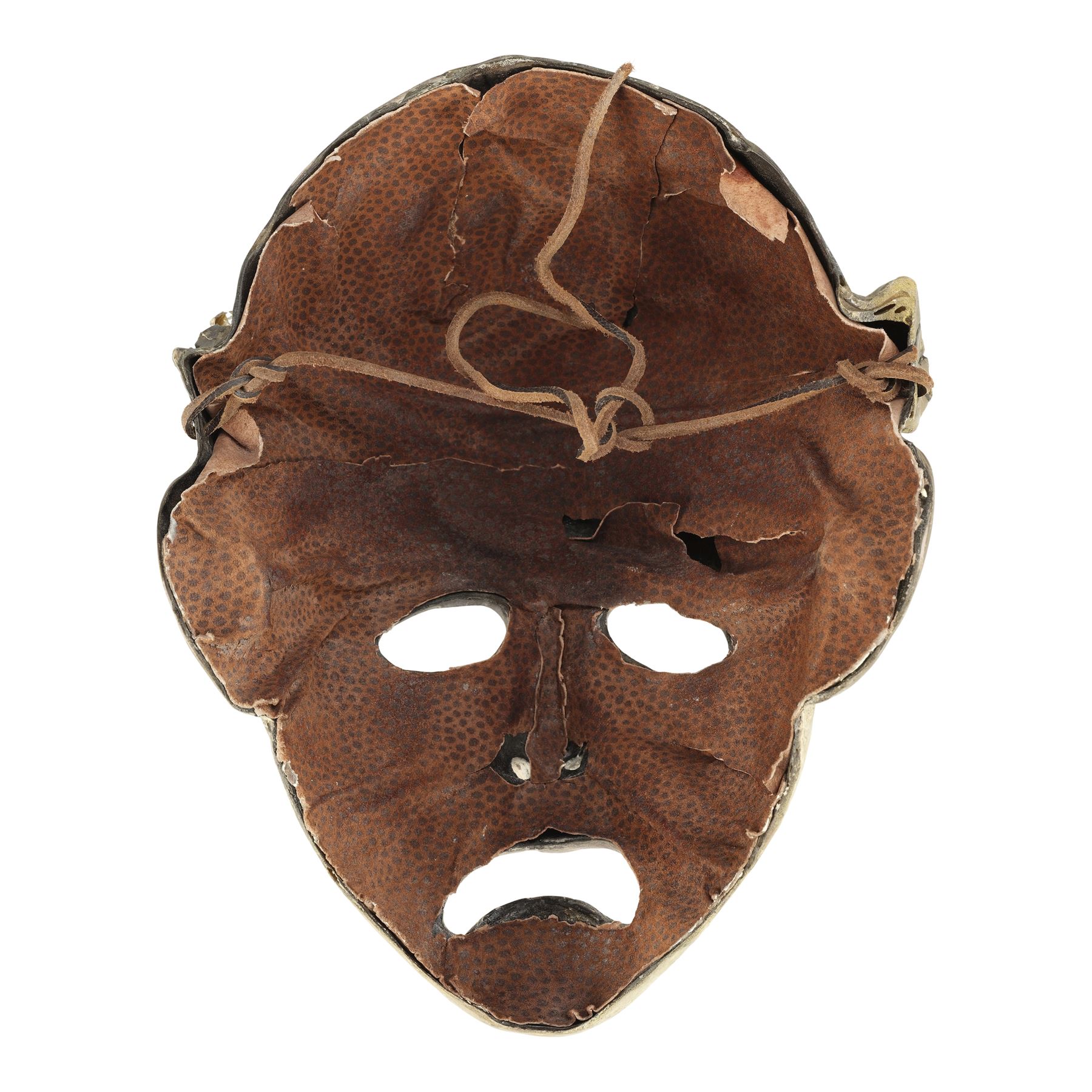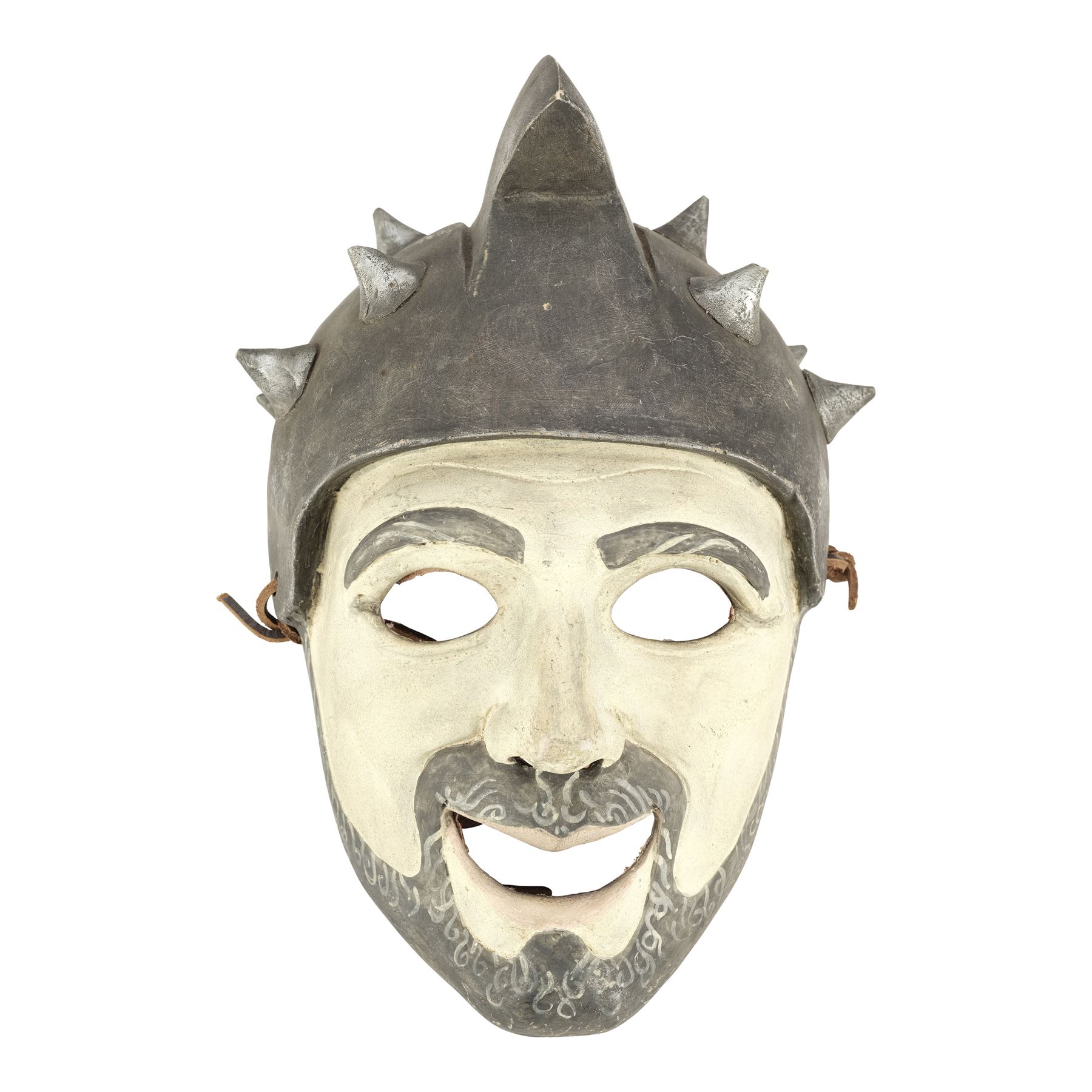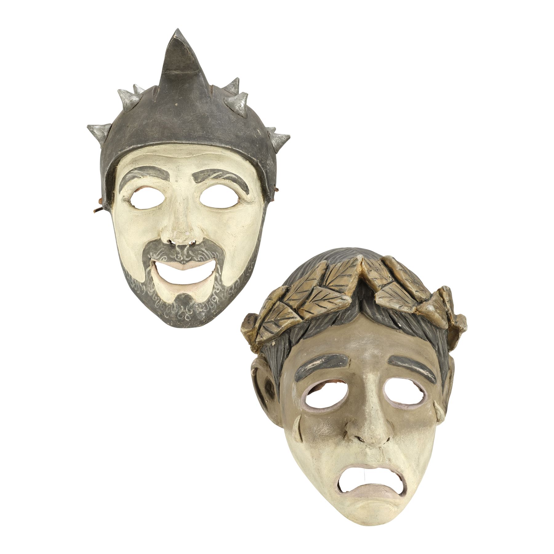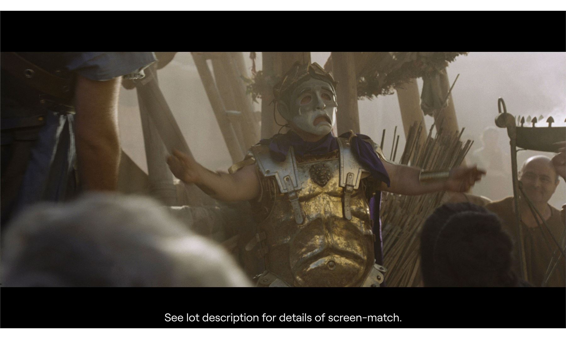 GLADIATOR (2000) - Screen-Matched Commodus Play Mask with Two Play Masks - A screen-matched Commodus play mask with two play masks from Ridley Scott's Gladiator. Intentional production distressing around the eyebrows and cheeks of the mask in Emperor Commodus' (Joaquin Phoenix) likeness screen-matches to when citizens outside the Colosseum performed a small play reenacting Maximus Decimus Meridius' (Russell Crowe) recent victories in the arena.
