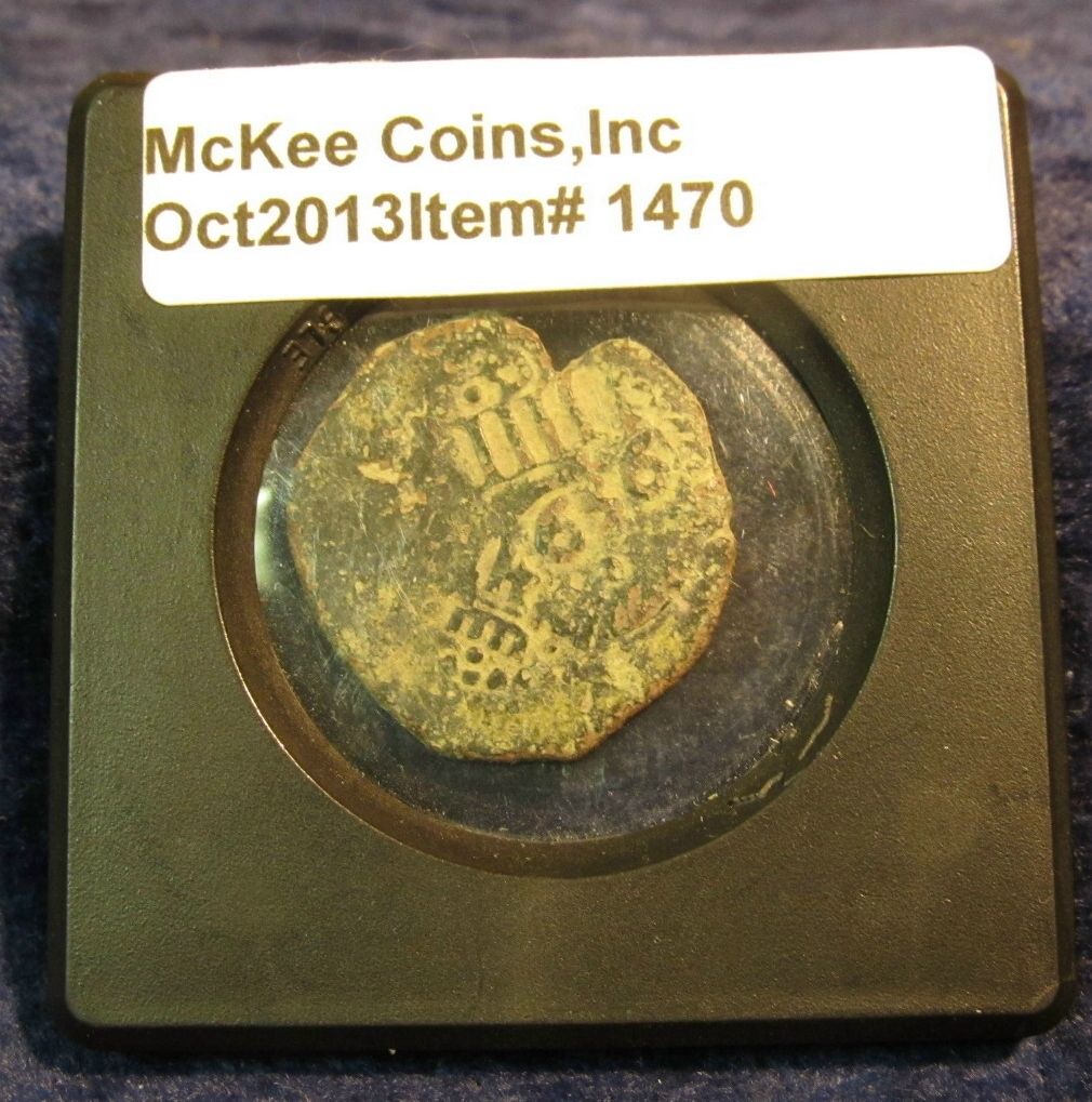 1470. 1656 Early Colonial Coin with "IIII" counterstamp & "VI". Believed to be early Puerto Rico.