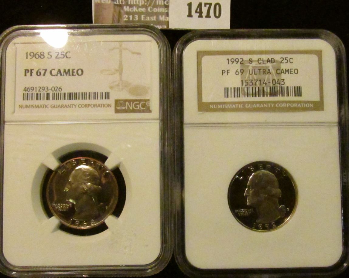 1968-S Washington Quarter Graded Proof 67 Cameo By NGC and 1992-S Proof Washington Quarter Graded Proof 69 Ultra Cameo By NGC