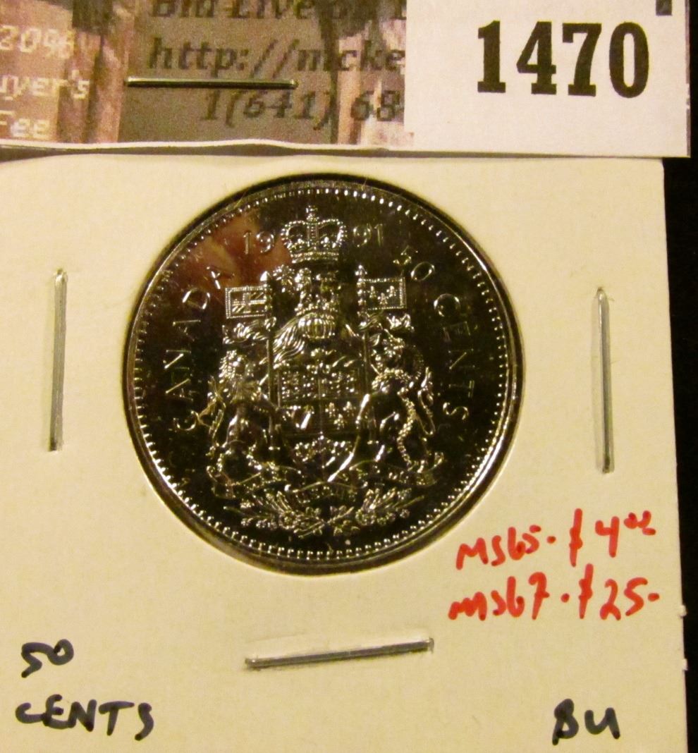 1470 . 1991 Canada 50 Cents, BU, MS65 value $4, MS67 value $25