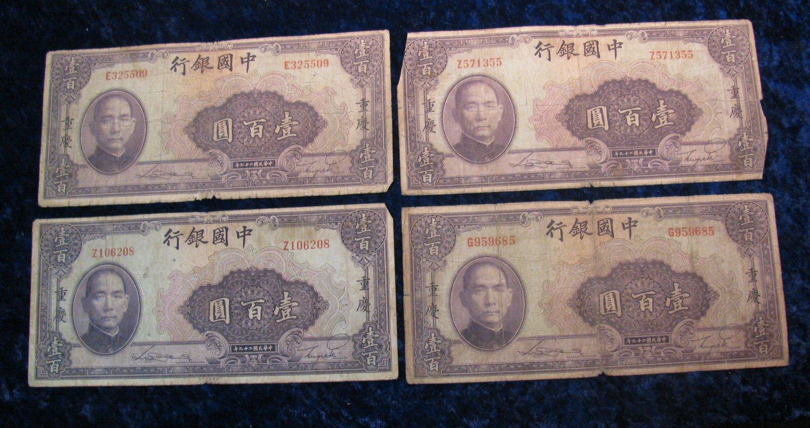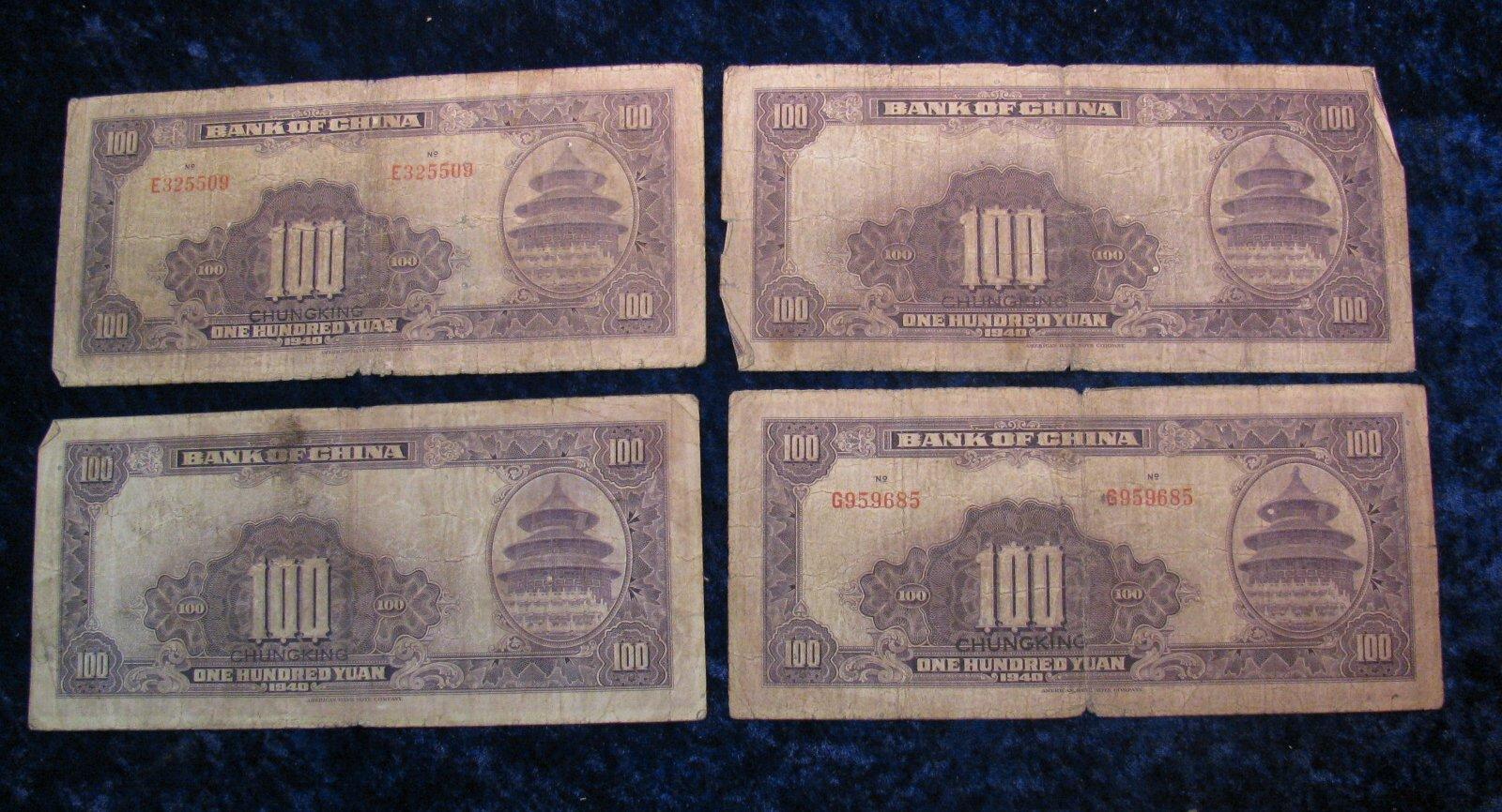 1470. (4) 1940 Bank Of China 100 Yuan Notes,Chungking. Circulated.