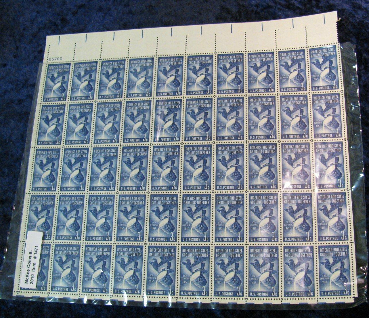1471. Mint Sheet of "1957 Steel Centennial" .03c Stamps. (face value $1.50)