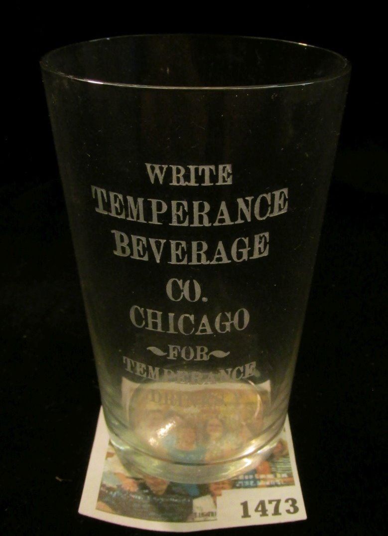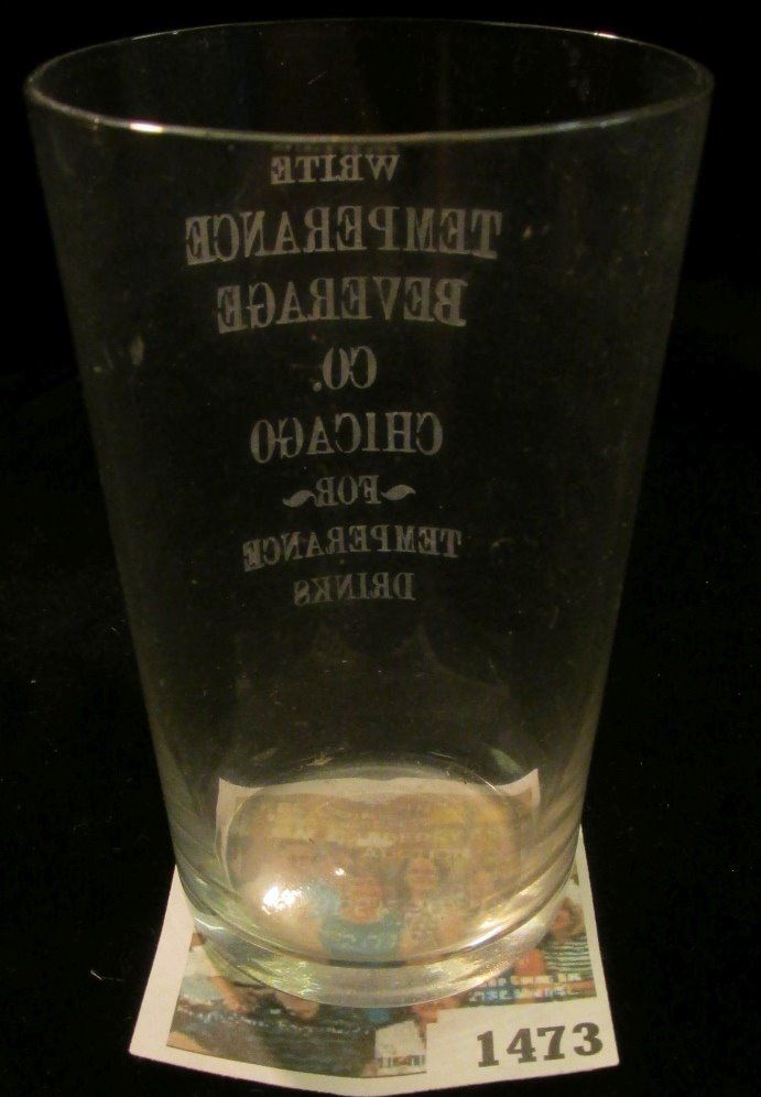 Old Temperance Shot Glass " Etched Crystal. "Write Temperance Beverage Co. Chicago For Temperance Drinks", 3 1/2" tall.