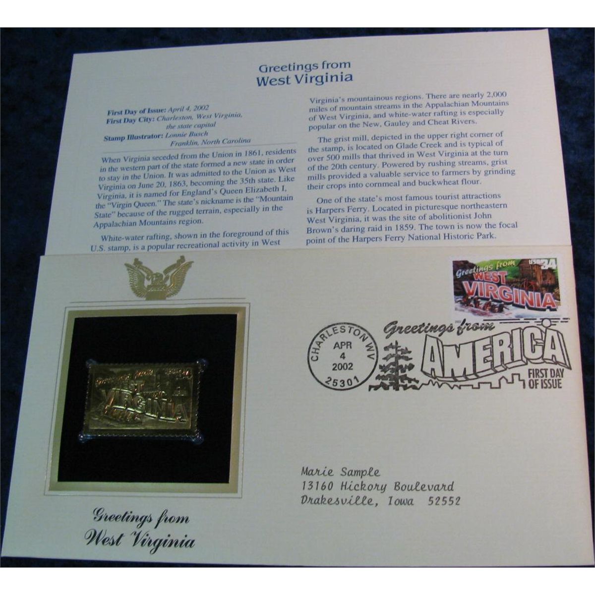 1474. 2002 West Virginia 22K Gold First Day Stamp Cover