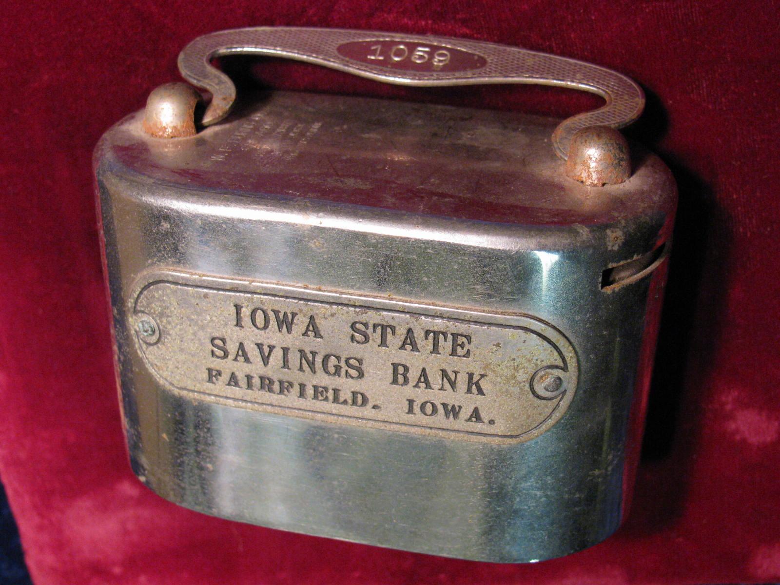 1474. Antique Coin Bank. Iowa State Savings Bank, Fairfield, Iowa.