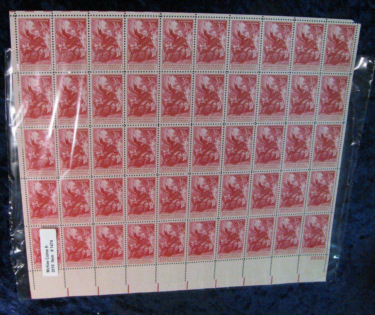 1474. Mint Sheet of "Benjamin Franklin 250th Anniversary" .03c Stamps. (face value $1.50)