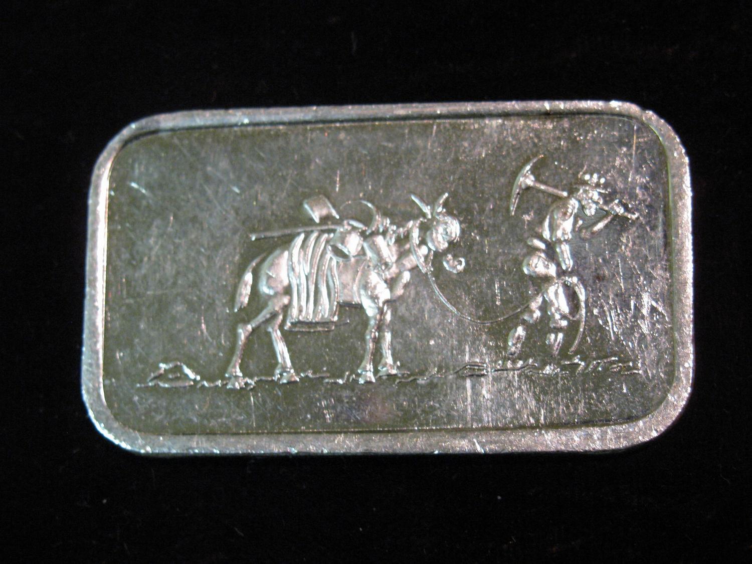 1476. Prospector with Mule One Ounce .999 Fine Silver , Towne Ingot.