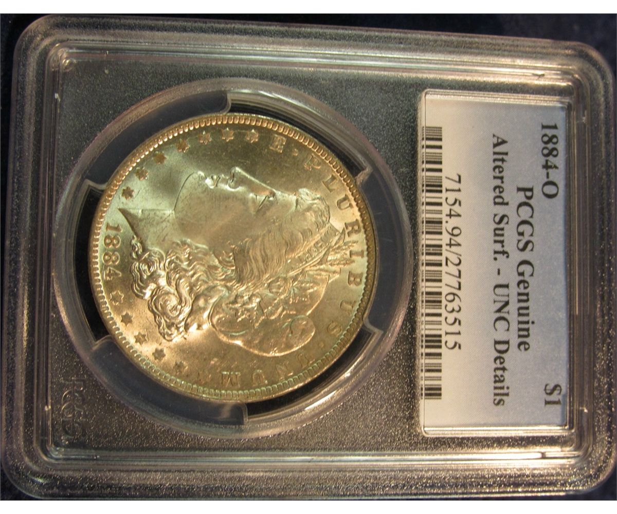 1479. 1884 O U.S. Morgan Silver Dollar. PCGS Genuine Altered Surf. - UNC Details.