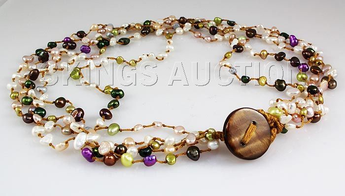 148.00CTW Multi Color Thread Freshwater Pearl Necklace **|**|** 19 inches Multi-color 5 Strand Thread Freshwater Pearl Necklace w/ Botton Lock ; MSRP: $300