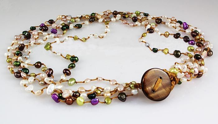 148.00CTW Multi Color Thread Freshwater Pearl Necklace **|**|** 19 inches Multi-color 5 Strand Thread Freshwater Pearl Necklace w/ Botton Lock ; MSRP: $300