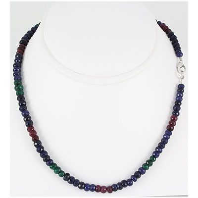 Beautiful 5-6mm Micro Faceted Multi-Color Rondelle Bead Gemstone Necklace. 16inch with Silver Lock