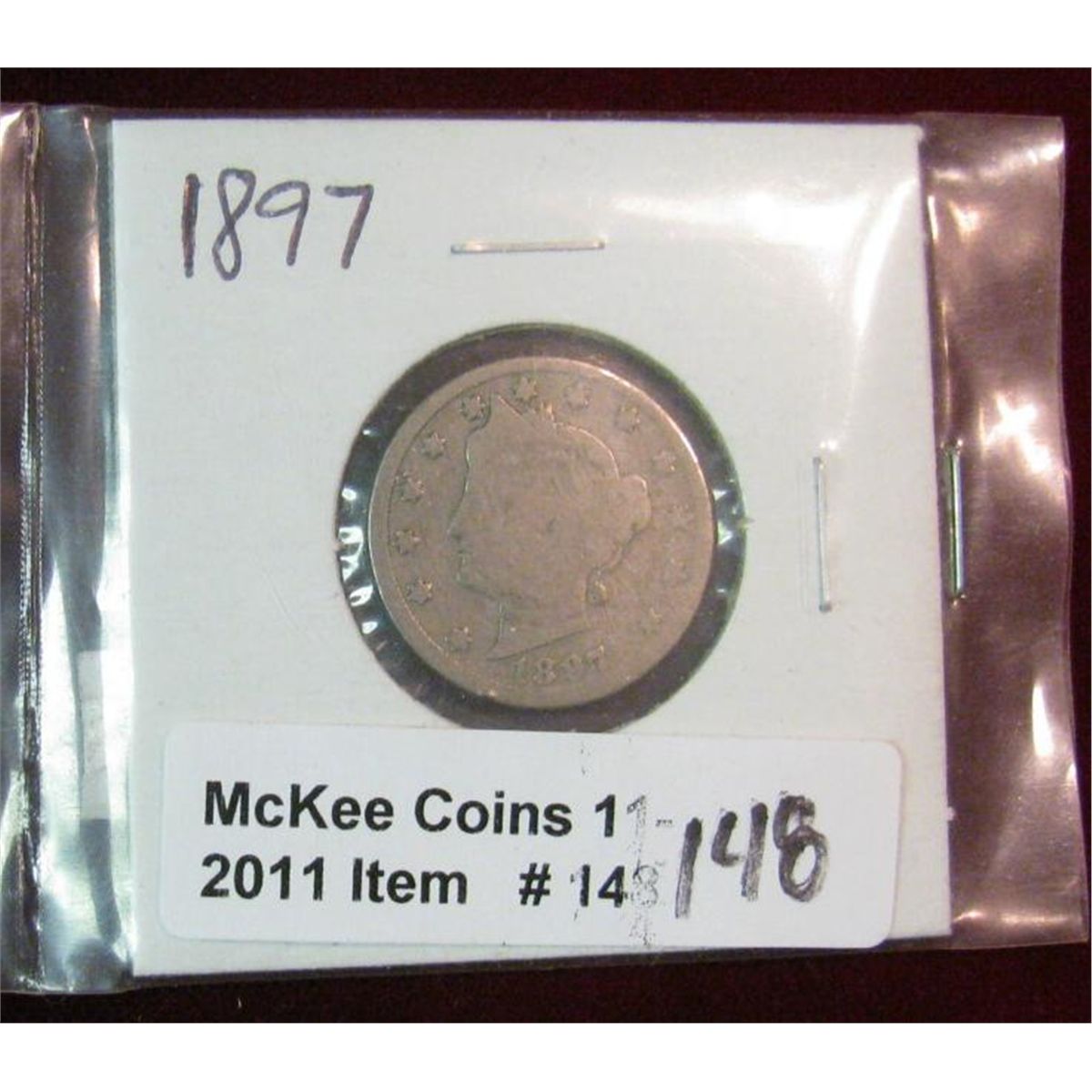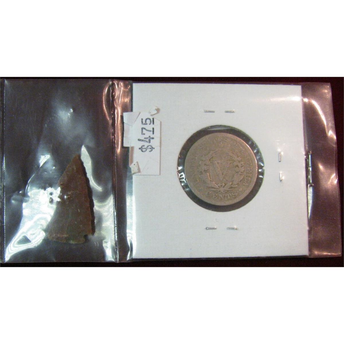 148. 1897 Liberty Nickel with a flint Indian Arrow Head.
