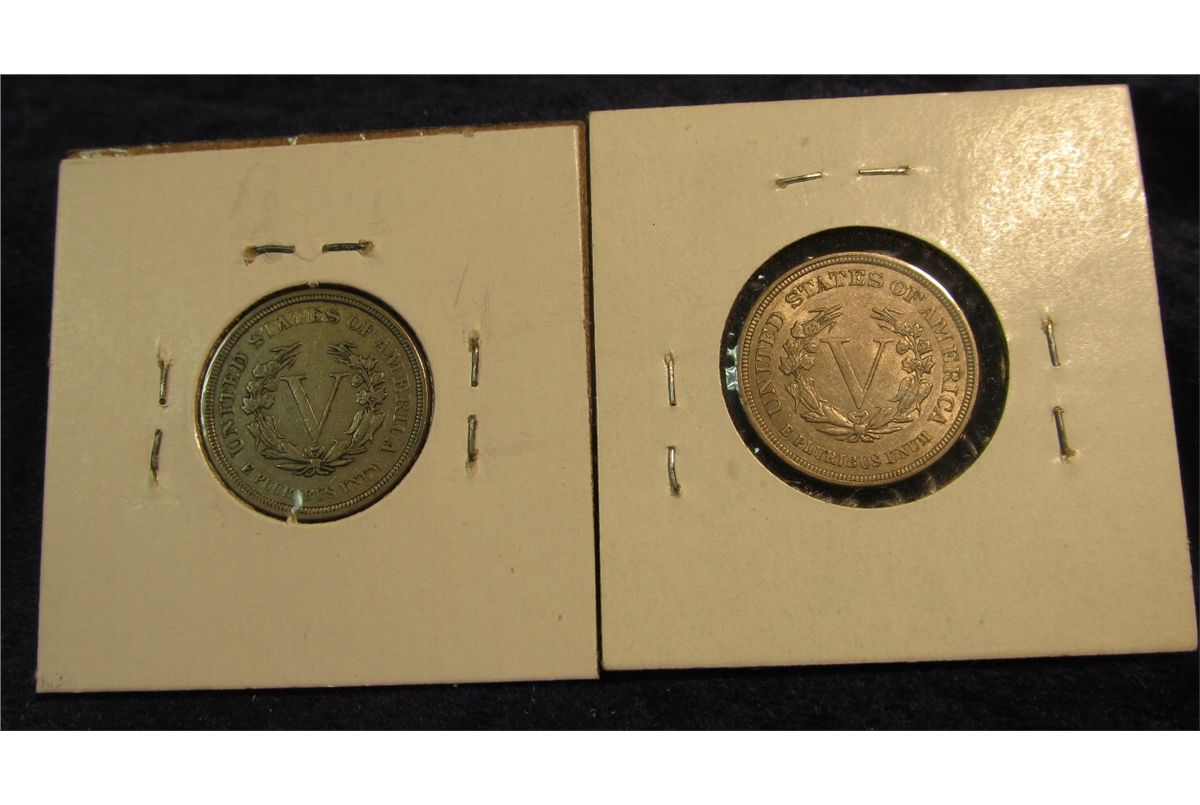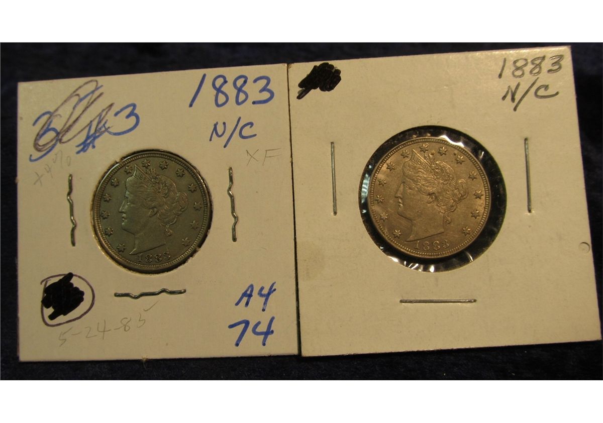 148. (2) 1883 No Cents Liberty Nickels. EF-AU. Redbook value $24.00.