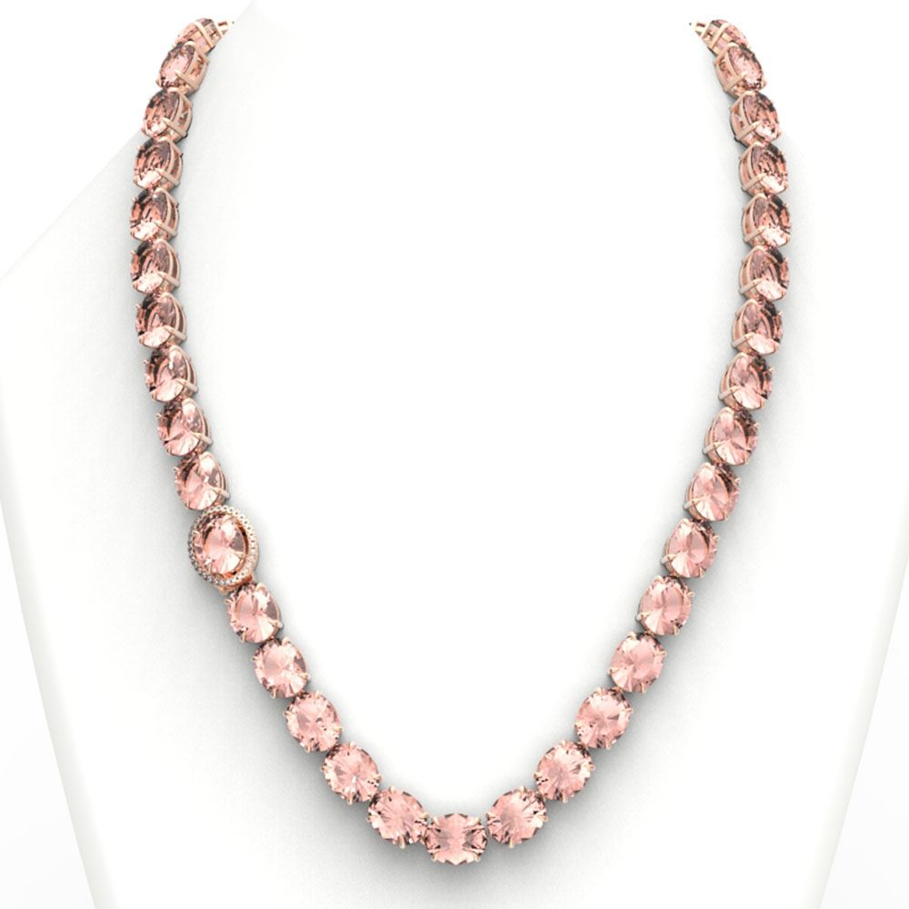 REF-2254F5M - SKU: 22305 ---- 148 ctw Morganite & VS/SI Diamond Micro Pave Necklace 14k Rose Gold