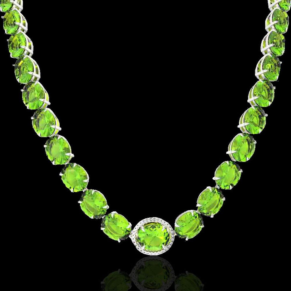 REF-890G9W - SKU: 22307 ---- 148 ctw Peridot & VS/SI Diamond Halo Micro Necklace 14k White Gold