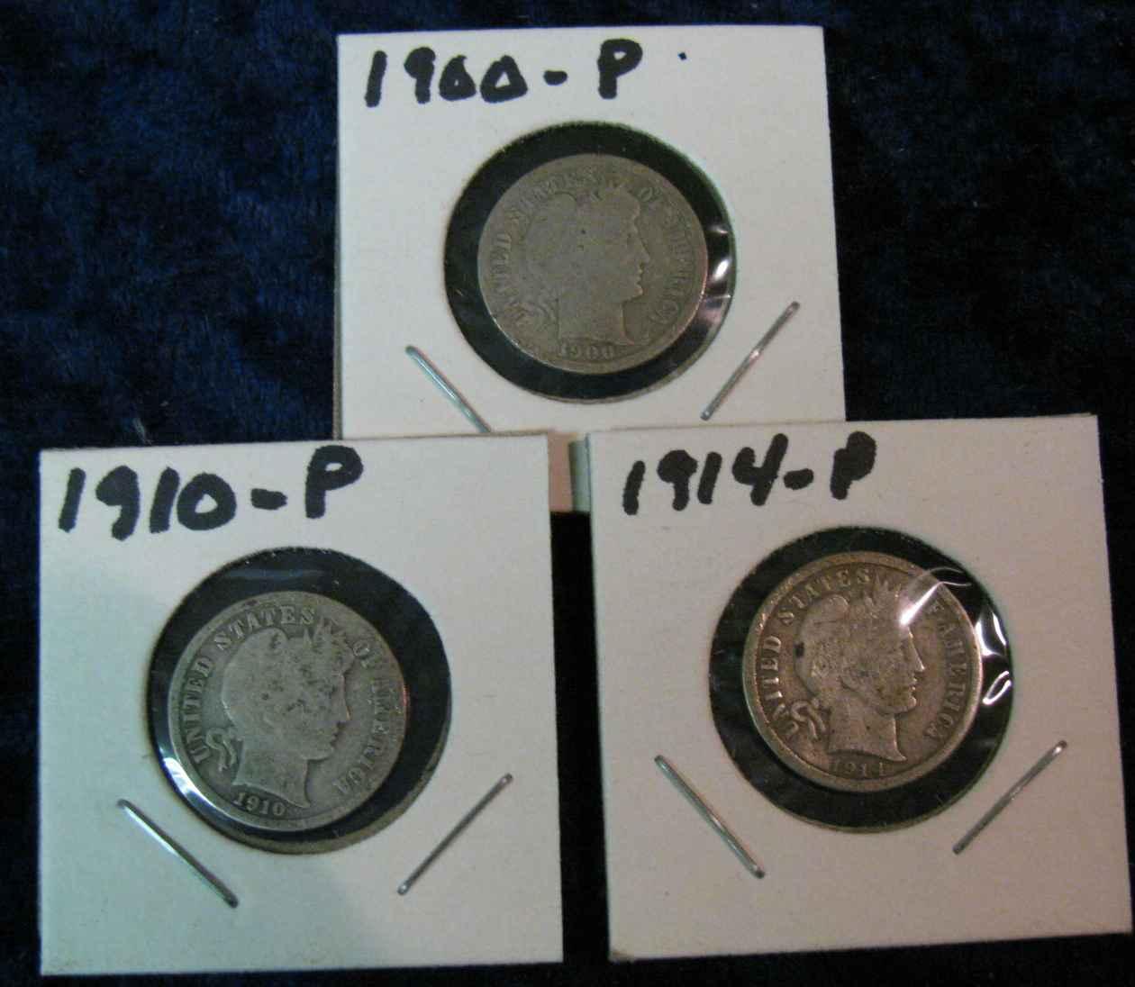 1481. 1900P, 10P & 14P Barber Dimes. G.