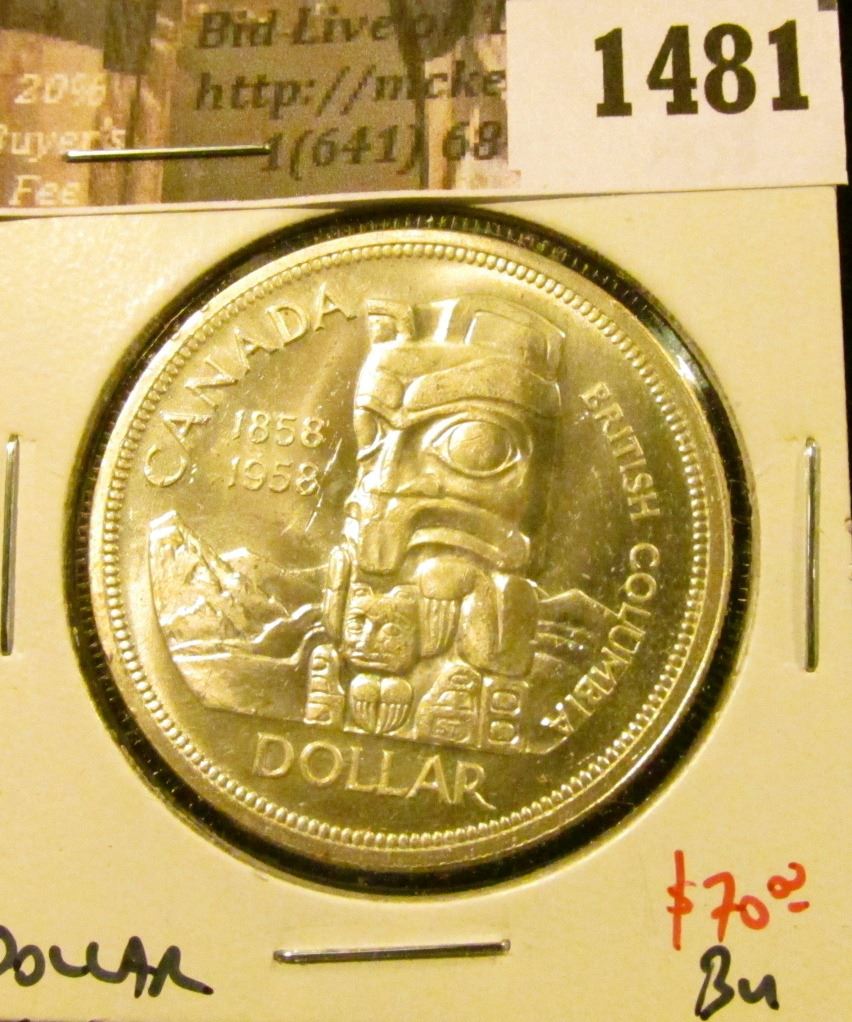 1481 . 1958 Canada Silver Dollar, BU, value $70+
