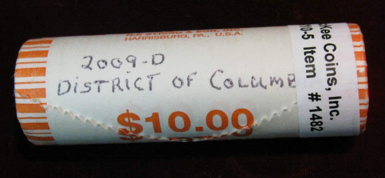 1482. 2009 D District of Columbia Original Gem BU Roll Statehood Quarters. ($10 face value).