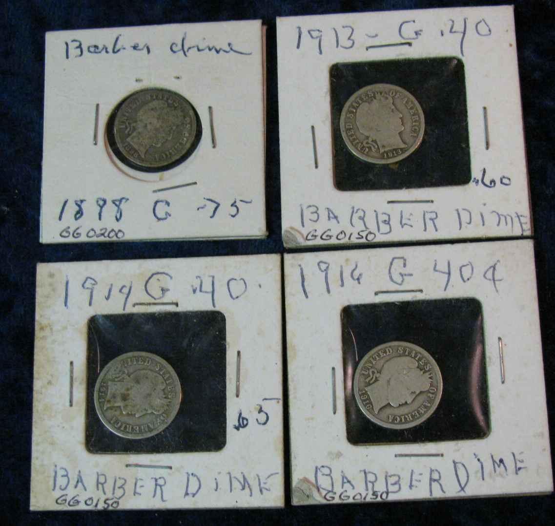 1483. 1898, 1913, 14 & 16 Barber Dimes. G.