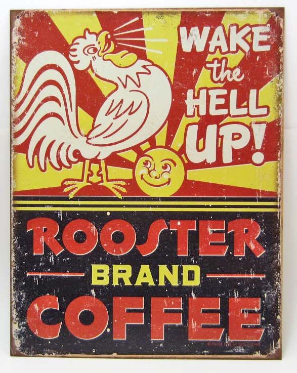 14830 - ROOSTER COFFEE METAL SIGN APPROX. 12 1/2" X 16"
