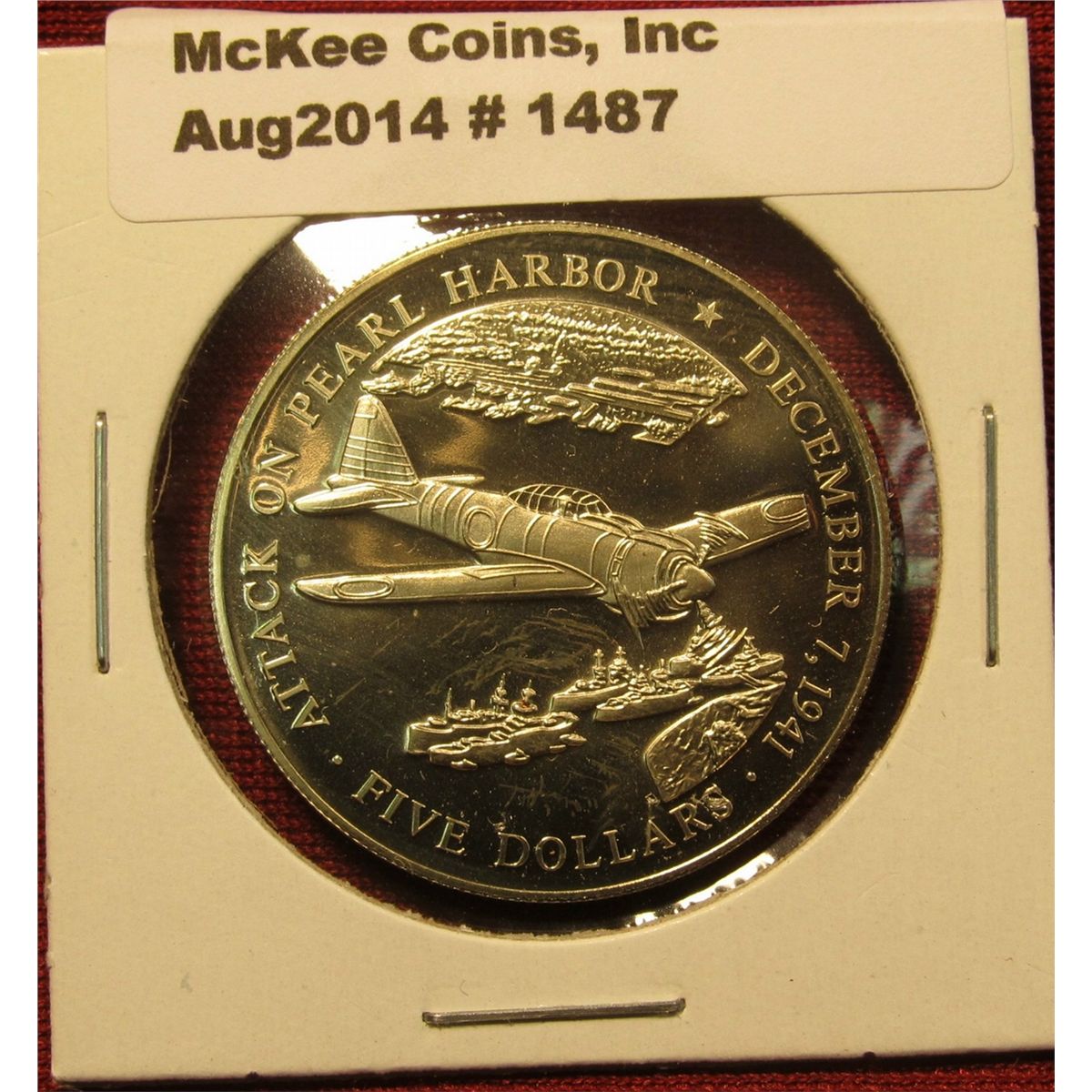 1487. 2000 Liberia $5 commemorative coin – Attack on Pearl Harbor December 7, 1941