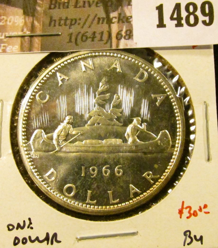 1489 . 1966 Canada Silver Dollar, LB, BU, value $30+
