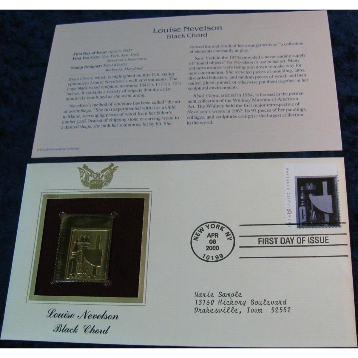 1489. 2000 Louis Nevelson (Black Chord) 22K Gold First Day Stamp Cover