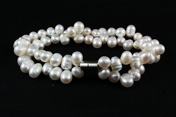 149.10CTW 7in. WHITE TWISTED RICE PEARL BRACELET **|**|** 6MM WHITE TWISTED RICE PEARL BRACELET WITH MAGNET SILVER LOCK ; MSRP: $300