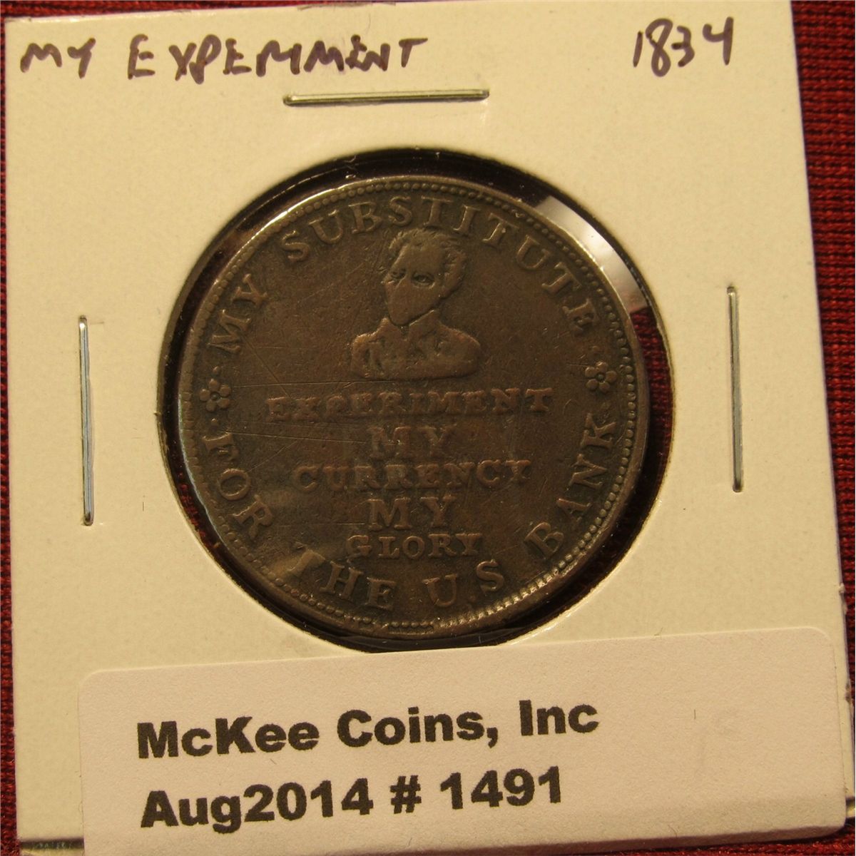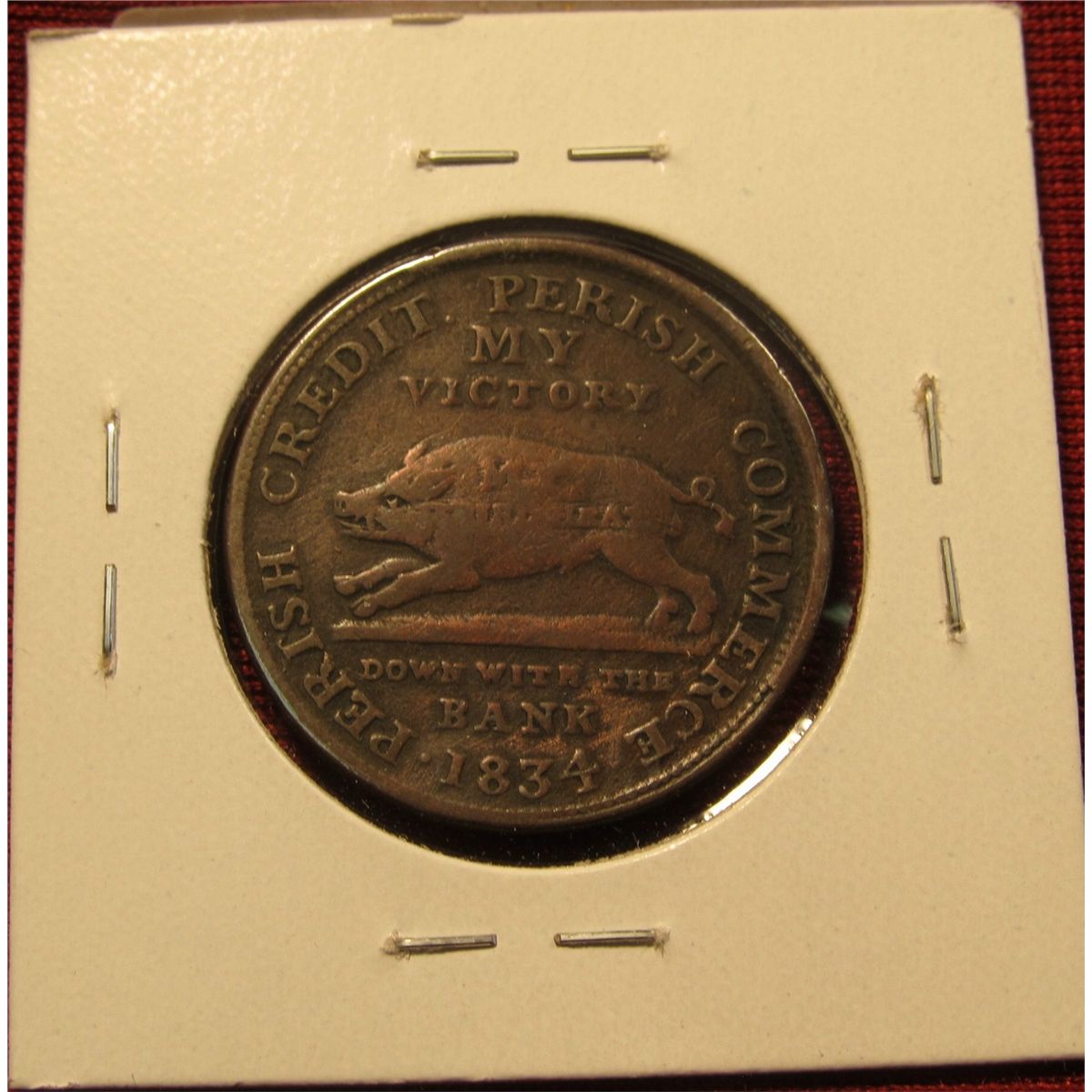 1491. 1834 Hard Times token – My Experiment / running Boar