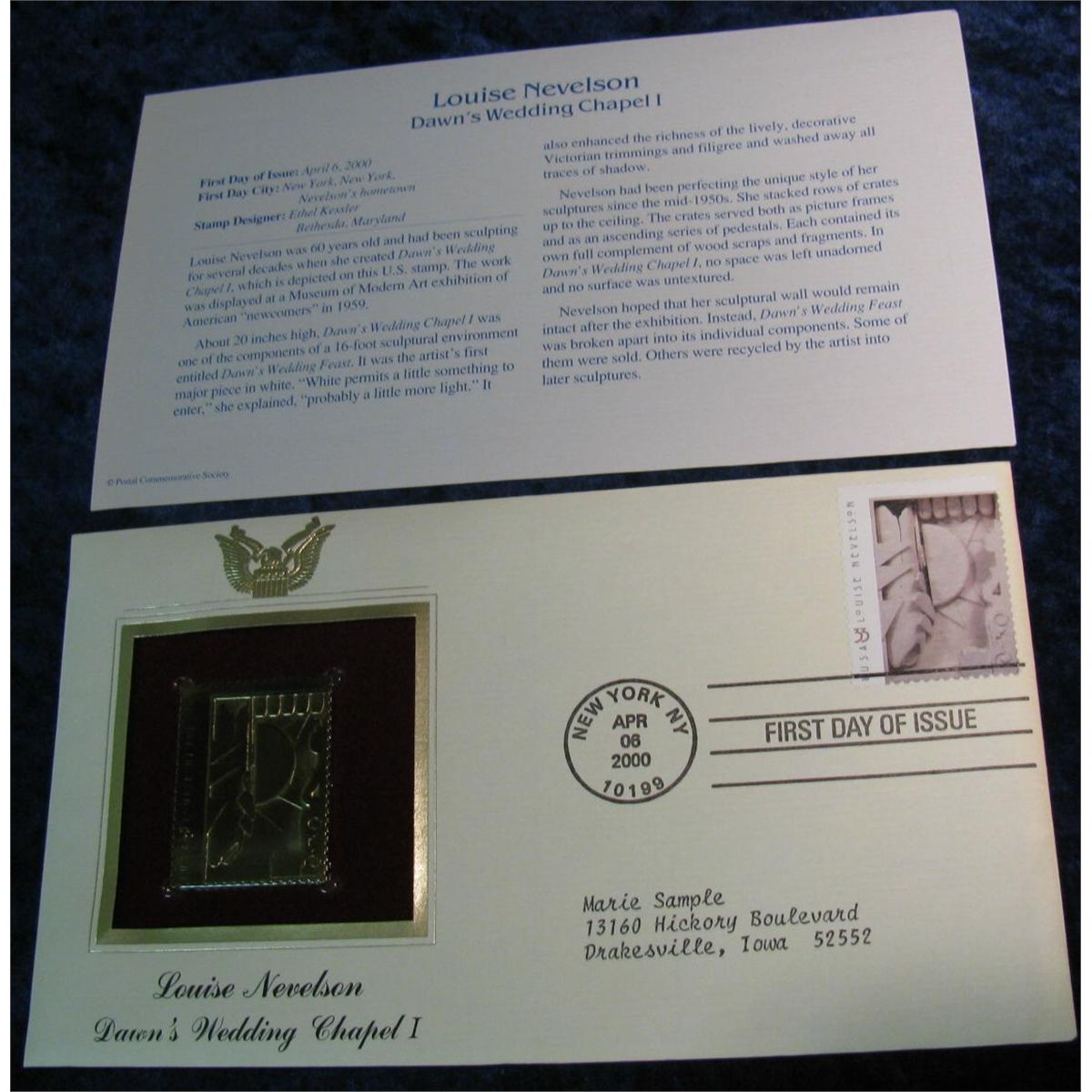 1491. 2000 Louis Nevelson (Dawn's Wedding Chapel I) 22K Gold First Day Stamp Cover