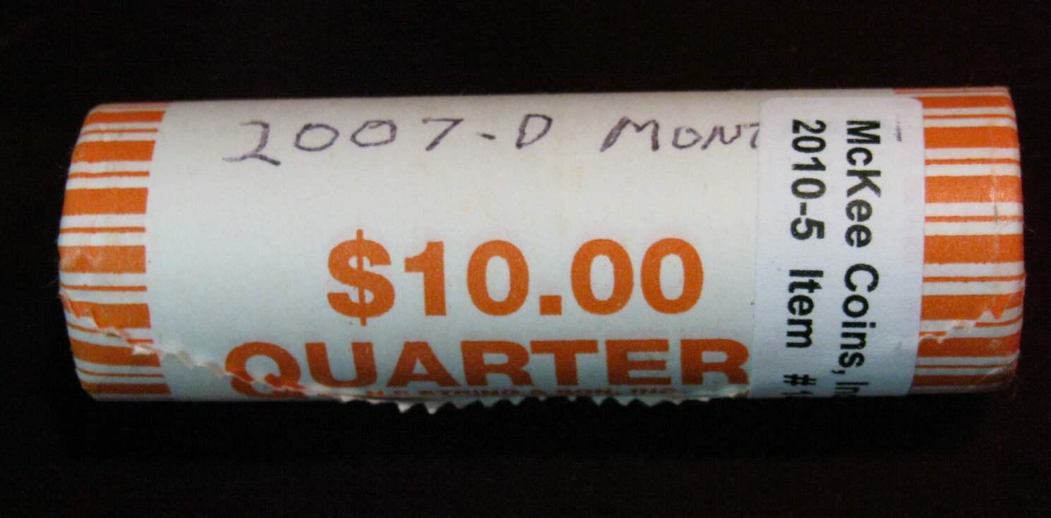 1493. 2007 D Montana Original Gem BU Roll Statehood Quarters. ($10 face value).