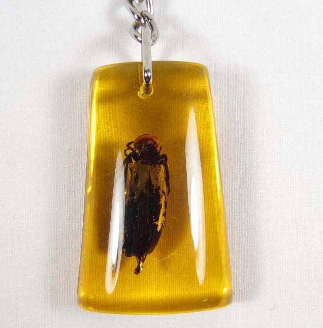 1493 - BEETLE IN YELLOW RESIN KEYCHAIN - 1.5"